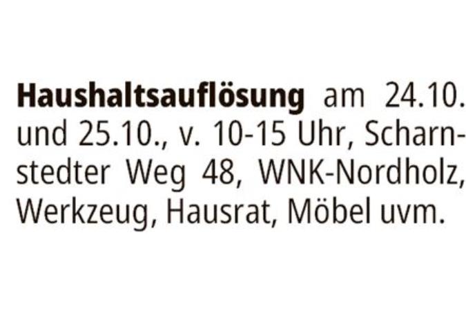 Haushaltsauflösung am 24.10. und 25.10., v. 10-15 Uhr, Scharnstedter Weg 48, WNK-Nordholz, Werkzeug, Hausrat, Möbel uvm.