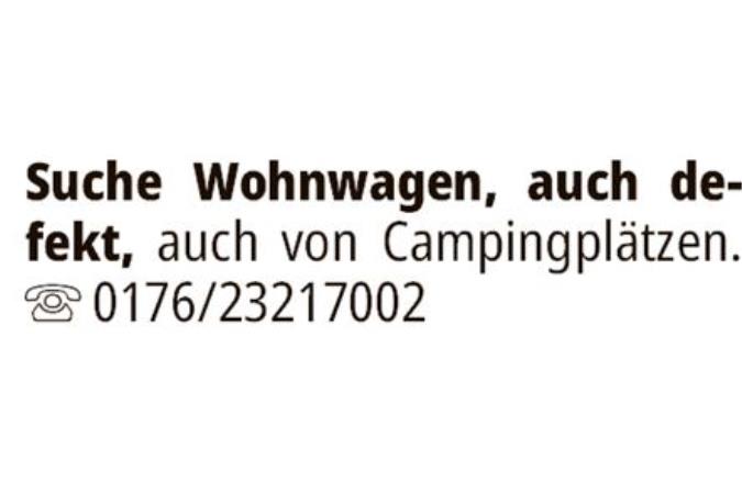 Suche Wohnwagen, auch defekt, auch von Campingplätzen. 0176/23217002