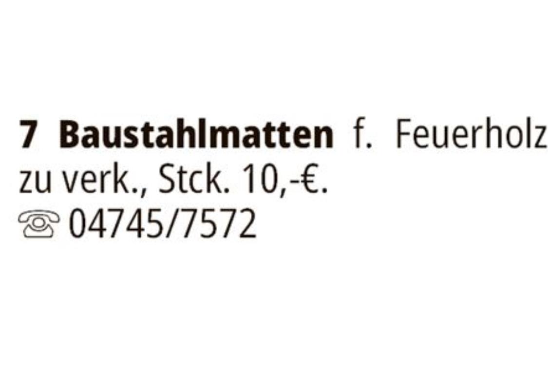 7 Baustahlmatten f. Feuerholz zu verk., Stck. 10,-€. 04745/7572